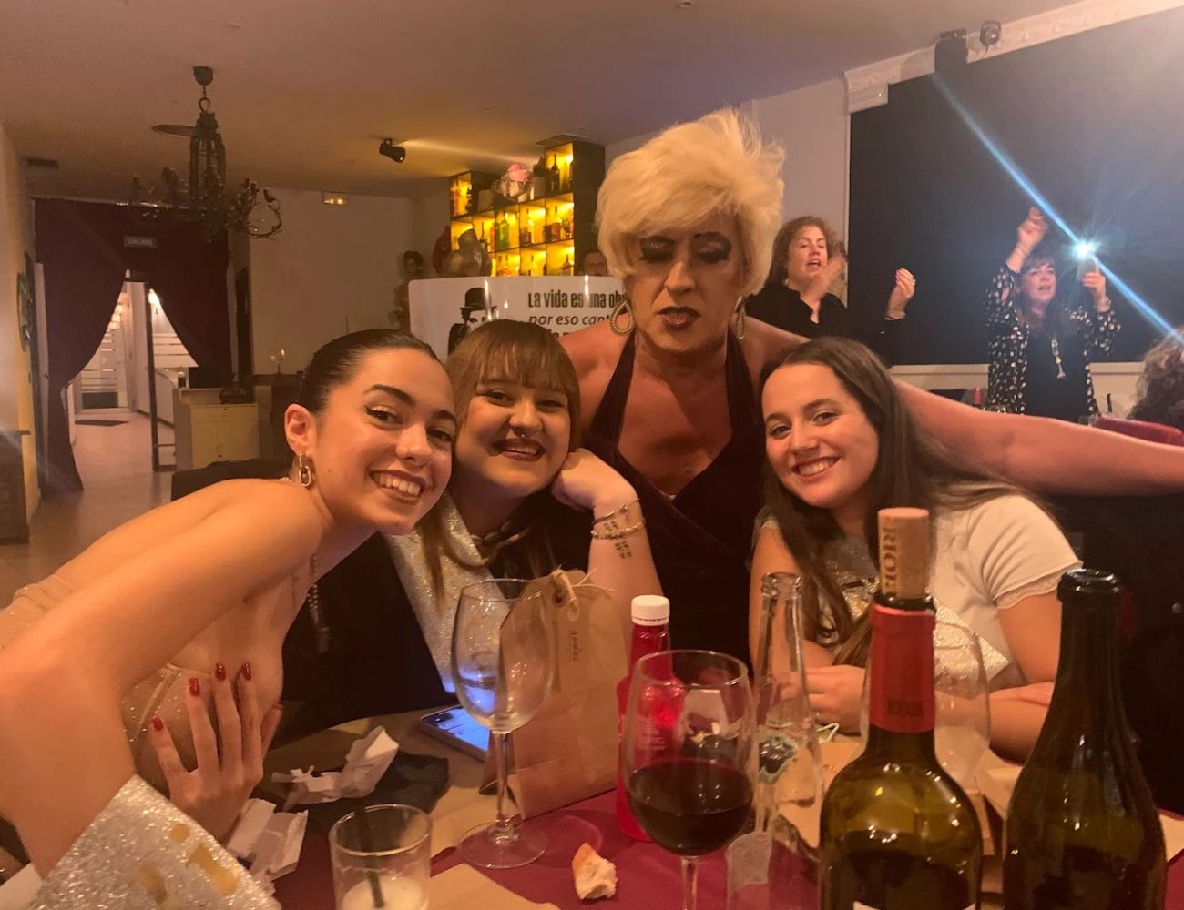 La cena se acompaña de un completo show con bailarines profesionales, una deslumbrante performance de pole dance y la actuación de drag queen, garantizando risas, humor y espectáculo. Todo ello se vive desde mesas personalizadas, rodeados de otros grupos en un ambiente festivo con juegos, concursos y bailes grupales. Para inmortalizar la experiencia, un reportaje de fotos y vídeo junto con photocall asegura recuerdos inolvidables.