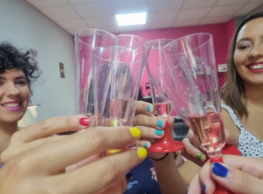 Además, podréis disfrutar de un ambiente festivo y divertido junto a vuestras amigas. Nuestro sillón especial para maquillaje os brindará comodidad mientras os preparáis para la gran noche. Y para hacer aún más especial el momento, os obsequiaremos vino espumoso y deliciosos snacks de aperitivo, para que podáis brindar y disfrutar de una experiencia única junto a vuestras mejores amigas.