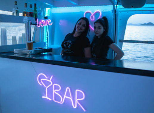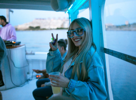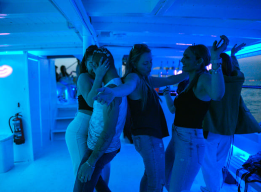 La ruta comienza al atardecer, ofreciéndote la oportunidad de admirar una de las puestas de sol más impresionantes desde la cubierta de nuestro barco. Mientras el sol se sumerge en el horizonte, el cielo se tiñe de tonos naranjas y rojizos, creando el escenario perfecto para una noche de diversión.