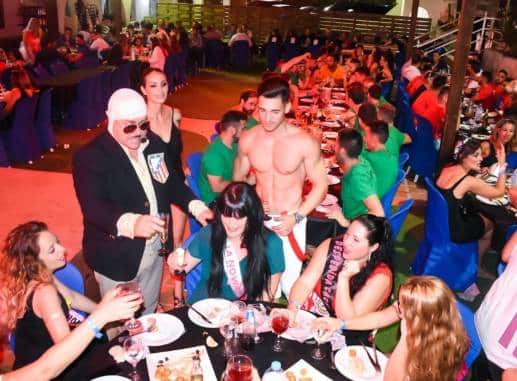 Disfruta de la mejor cena para despedidas de soltero y soltera en Mojácar. Te esperan espectáculos y una noche llena de sorpresas y diversión con otros grupos de despedida. El ambiente es inmejorable gracias a los transformistas, Drag Queen, animadores… Habrá juegos con regalos y podréis llevaros una foto de recuerdo de vuestra celebración.