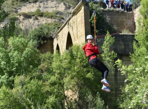- Tirolina: Siente la velocidad y el viento en tu rostro mientras te deslizas por la tirolina, disfrutando de vistas únicas del paisaje natural de Huesca.