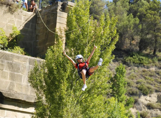 Superaremos las cuatro pruebas del circuito: escalada, rapel, tirolina que atraviesa el río, y tiro con arco, en el antiguo puente de Murillo. Un escenario perfecto para pasar un buen rato de aventura a la orilla del río en grupo.