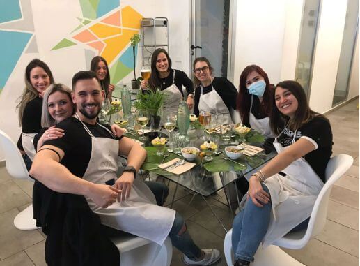 Sin embargo, muchos más grupos se juntan para trabajar en equipo en la cocina. Grupos de amigos, familiares o sorpresas de cumpleaños, son eventos muy típicos en nuestro Master Paradise chef de Madrid.