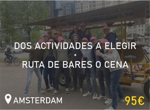 Organiza la despedida de soltero o soltera perfecta en Ámsterdam con nuestros packs. Ofrecemos una variedad de opciones para adaptarse a todos los gustos y estilos. Nuestros packs combinan las mejores actividades, asegurando una experiencia única y memorable. Explora diferentes combinaciones, como rutas por bares en el Barrio Rojo, cruceros privados por los canales o la divertida Beer Bike.