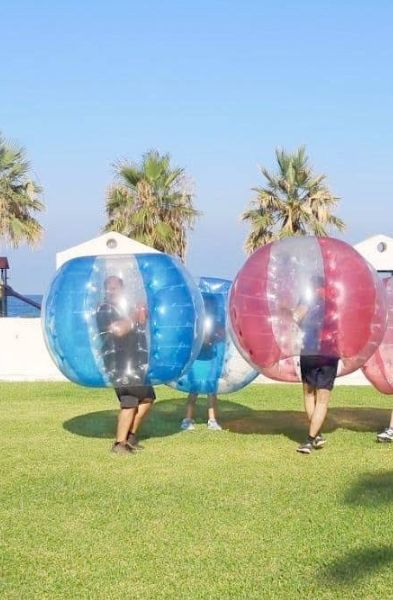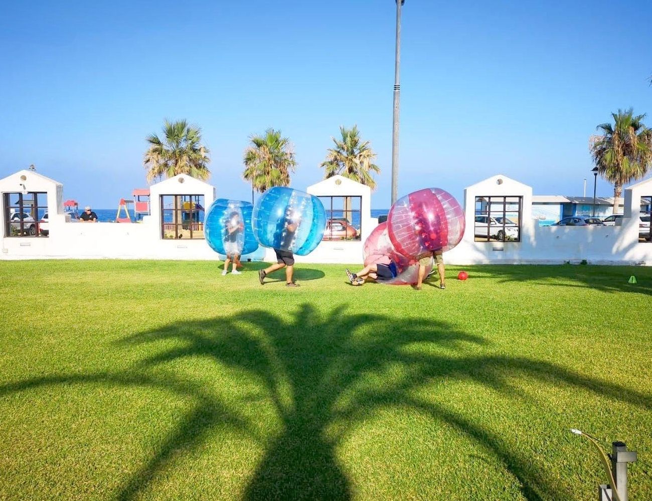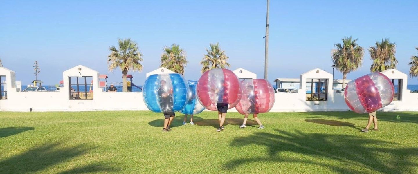 El plan incluye todo el material necesario: burbujas inflables individuales, campo adaptado, monitor para dirigir el juego y seguro de actividad. El grupo recibe una breve explicación inicial sobre normas y seguridad, garantizando una experiencia segura y muy divertida.