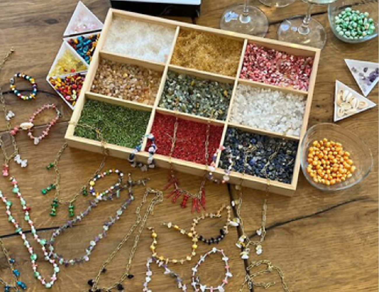 El taller suele incluir todos los materiales necesarios para realizar las joyas. También se incorpora la guía de un profesional que orienta con ideas, técnicas y combinaciones posibles. El propósito es garantizar una experiencia completa, fluida y creativa, en la que cada persona diseña una pieza única que conserva después de la despedida.