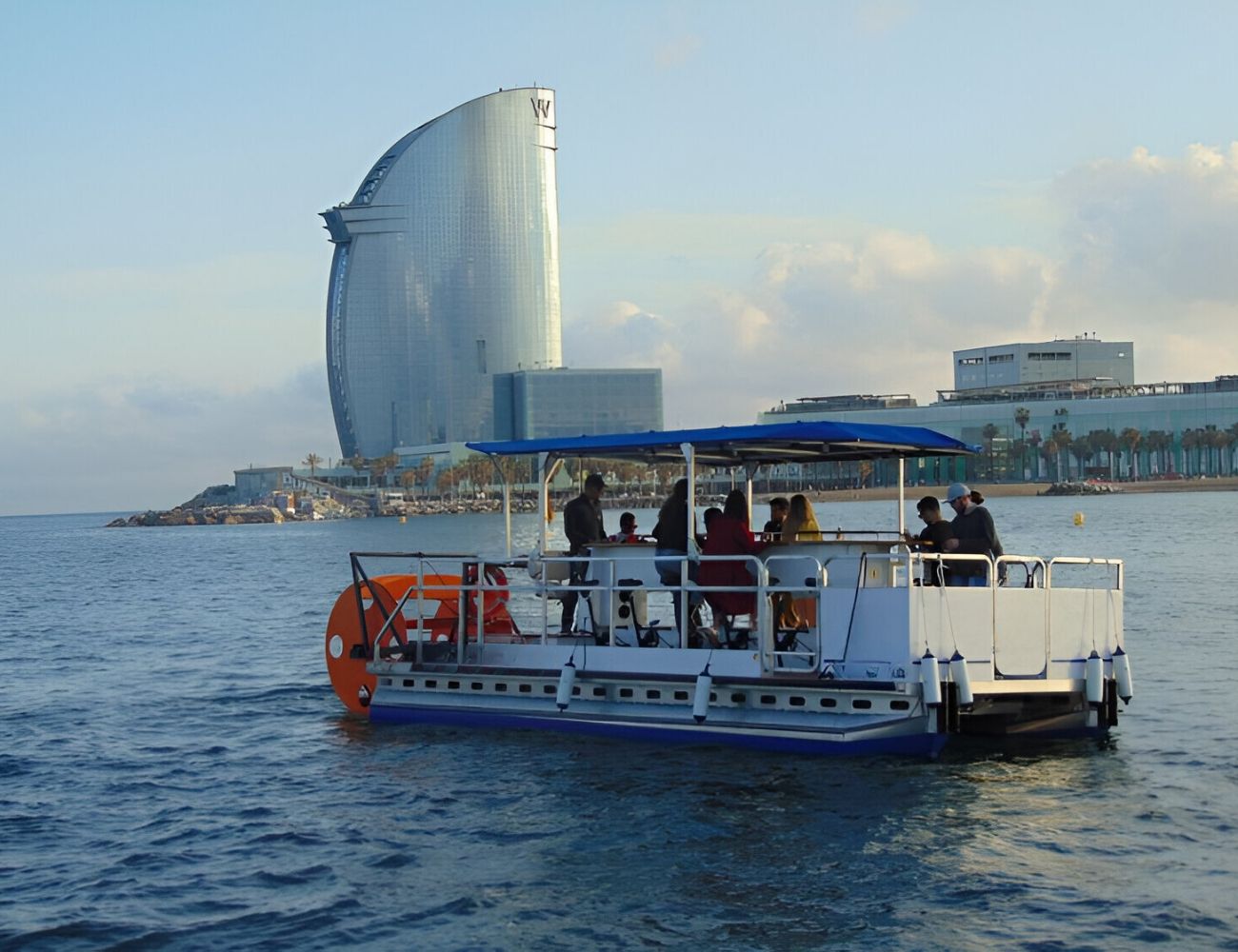La Beer Boat en Barcelona es una experiencia única y refrescante que permite disfrutar de una fiesta en el mar con amigos o compañeros de celebración. Este barco, equipado con un motor de 60HP, se convierte en el lugar ideal para pasar una tarde llena de diversión, brindis y buena música, mientras se recorren las costas de Barcelona y se disfruta de sus vistas espectaculares.