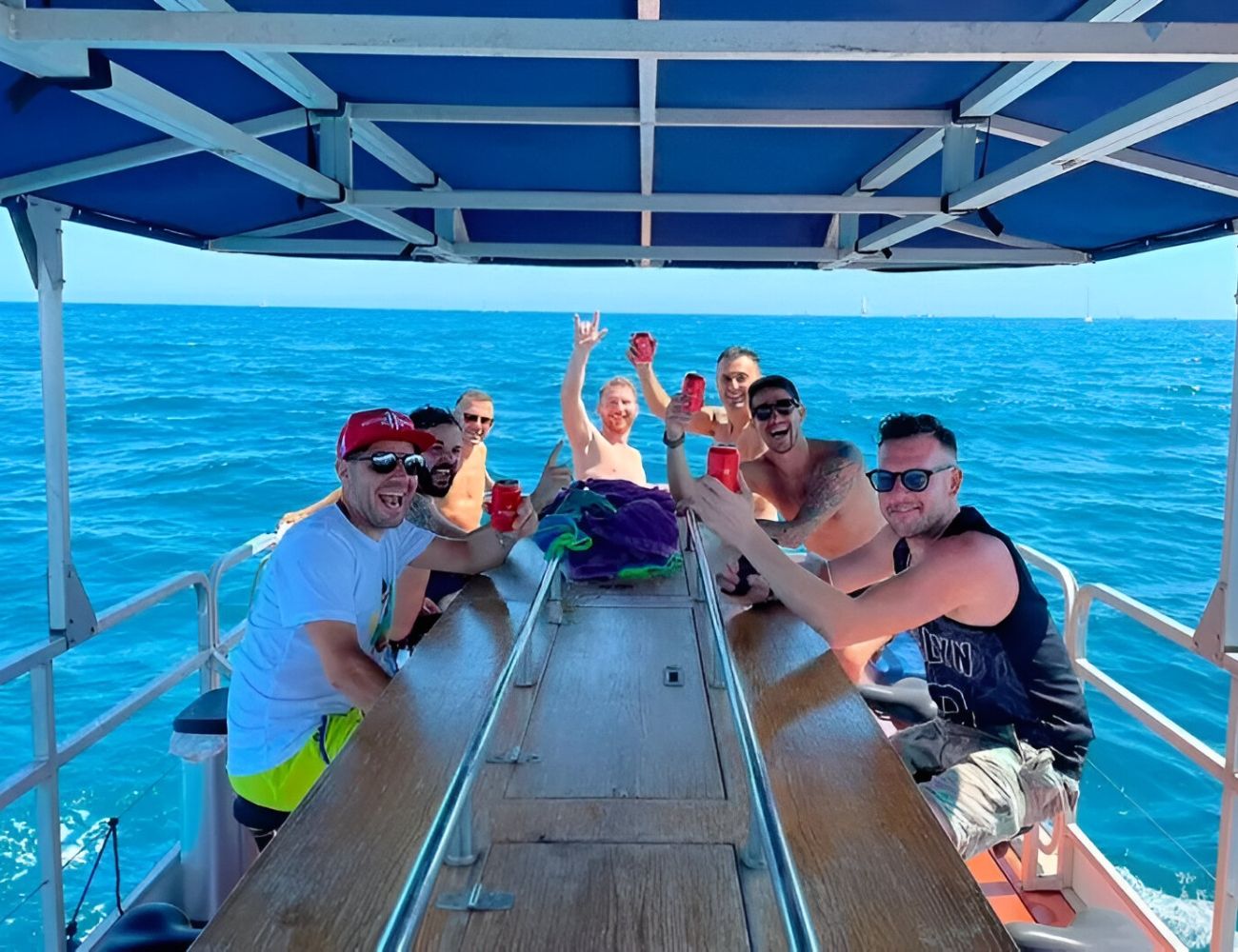 Durante la travesía, la música se convierte en la protagonista, manteniendo la energía al máximo con los mejores temazos del momento, creando una atmósfera de auténtica celebración. Entre risas, baile y brindis, cada grupo vive un momento inolvidable sobre las olas, con un entorno que invita a disfrutar del mar y del verano en estado puro.