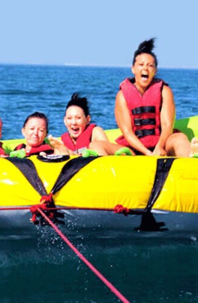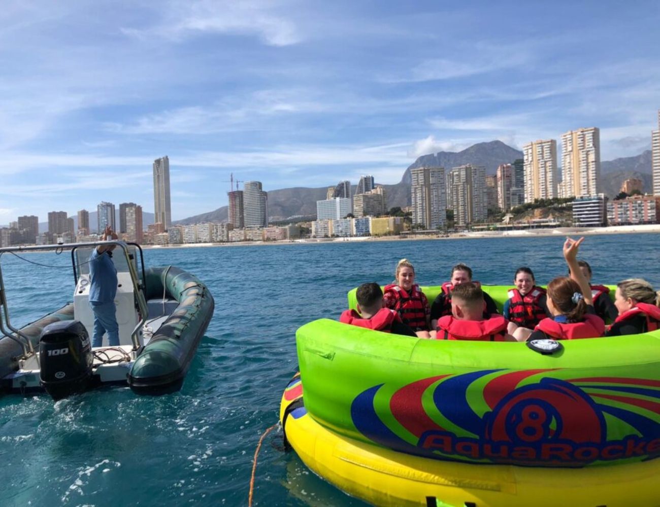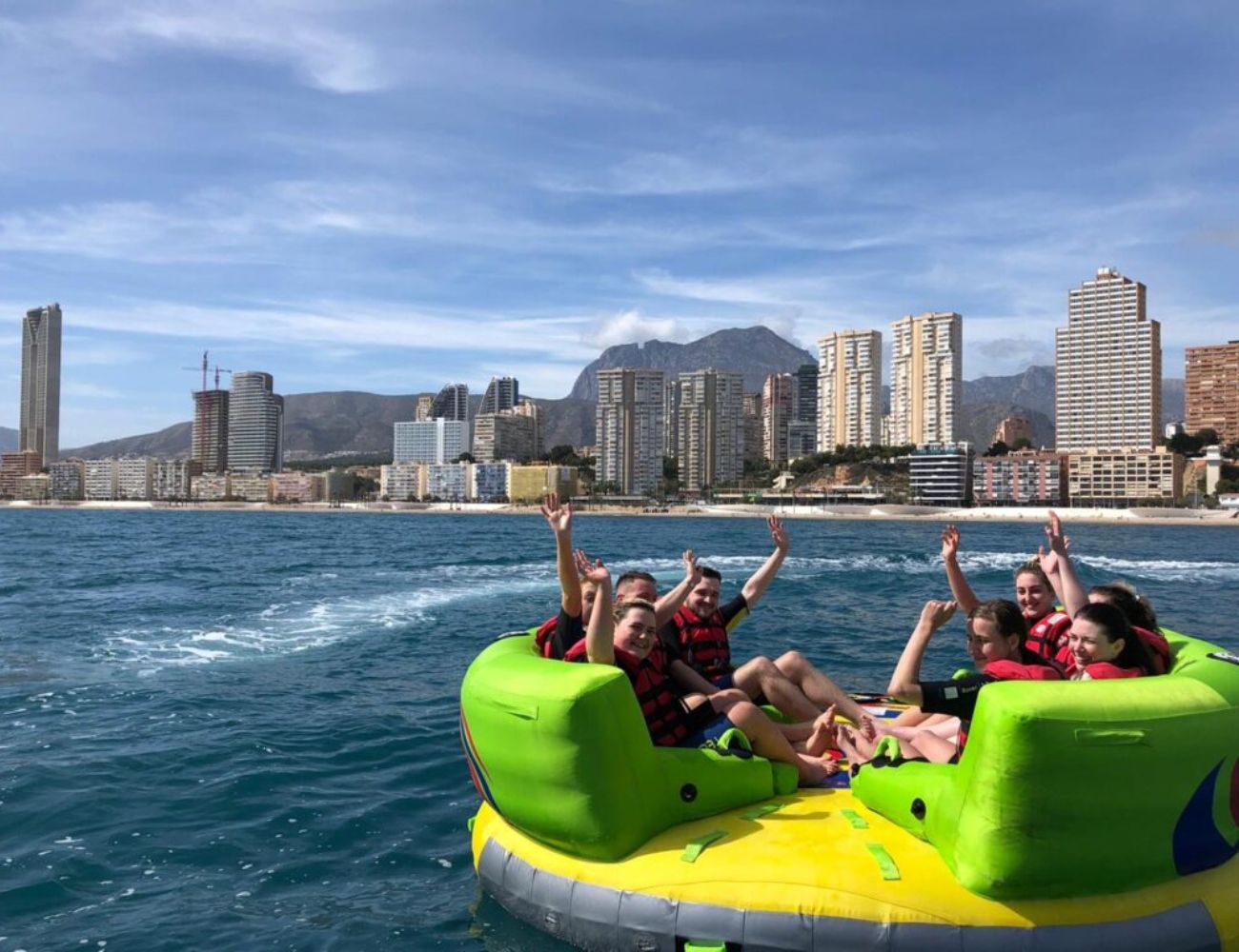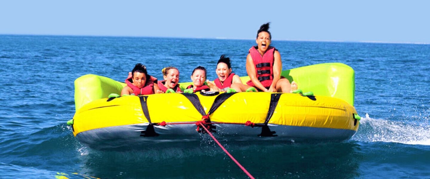 El movimiento constante del hinchable garantiza carcajadas desde el primer minuto. Los cambios de dirección, los rebotes sobre el agua y la sensación de velocidad convierten la actividad en un recuerdo inolvidable. La dinámica del Crazy Sofa es perfecta para quienes disfrutan de la acción y buscan un plan diferente en sus vacaciones en Benidorm.