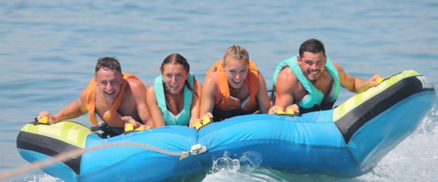 El Crazy Sofa resulta perfecto para grupos que buscan compartir una experiencia diferente en el mar. Despedidas de soltero y soltera, celebraciones de cumpleaños o salidas con amigos encuentran en esta actividad una opción llena de risas y complicidad. El reto de mantenerse sobre el hinchable une a todos los participantes en una auténtica aventura colectiva.
