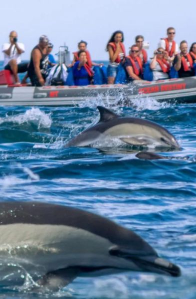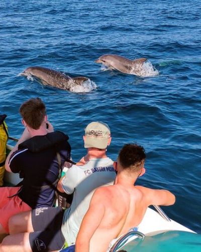 Si buscas una despedida de soltero llena de aventura y naturaleza, la Ruta de Cuevas y Delfines en Albufeira es la opción perfecta. En un recorrido de 18 km por la costa, explorarás paisajes impresionantes, rodeado de formaciones rocosas y aguas cristalinas. Durante la experiencia, tendrás la oportunidad de avistar delfines en su hábitat natural, creando momentos inolvidables. ¡Una forma única y emocionante de celebrar tu despedida!