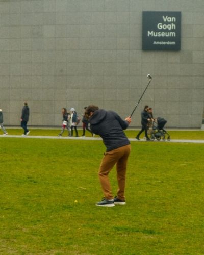 El golf urbano en Ámsterdam es una actividad lúdica que combina el tradicional juego de golf con un entorno urbano. Se juega en las calles, parques o áreas públicas de la ciudad, utilizando pelotas blandas o especiales para evitar daños en el mobiliario o personas. Los participantes deben golpear la pelota hacia objetivos predeterminados como bancos, estatuas o cualquier otro elemento urbano.