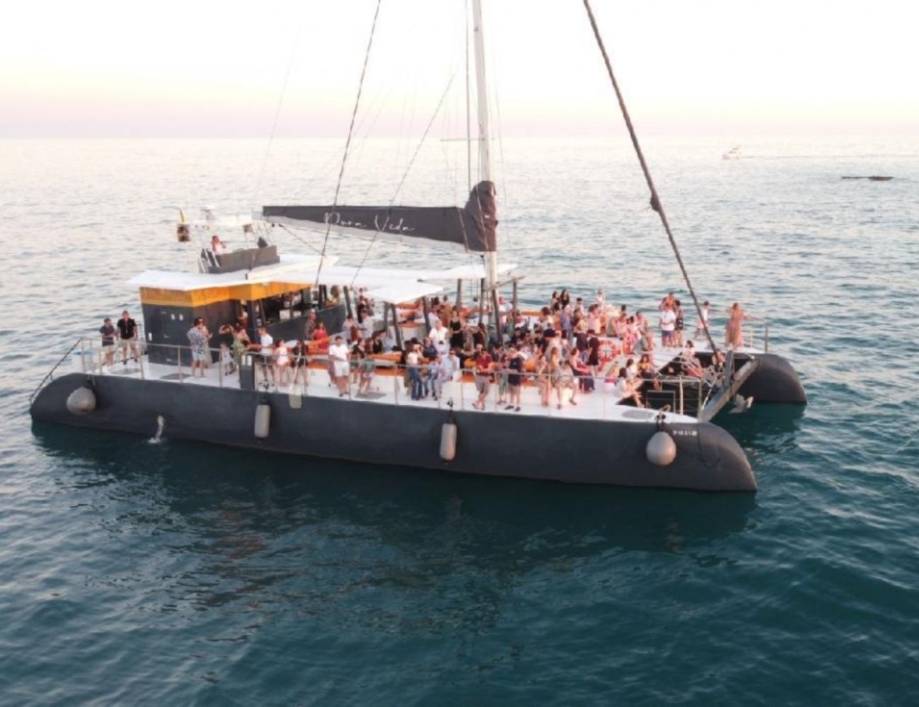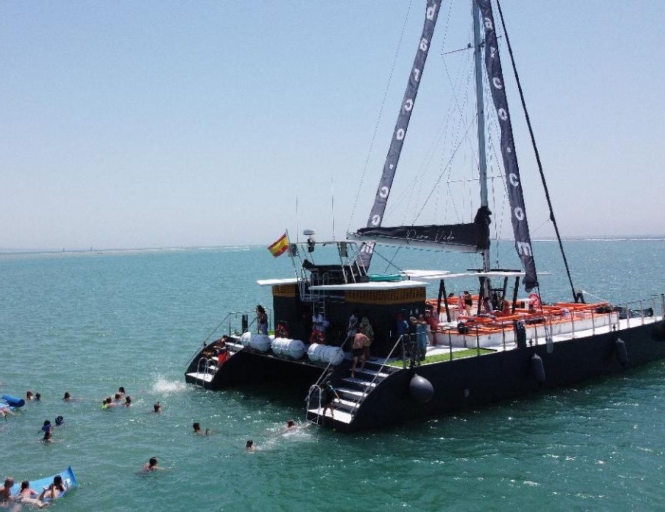 Navegaremos en nuestro espectacular catamarán por la bahía de Cádiz realizando la ruta que sea más placentera. Siempre que sea posible navegaremos a vela para sentir la navegación auténtica. Cuando encontremos el lugar idóneo para fondear disfrutaremos de un divertido baño en el mar con colchonetas gigantes y tobogán acuático.