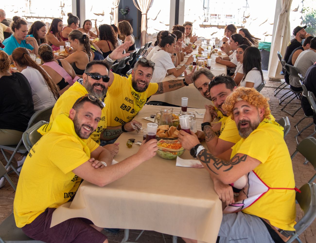 Durante la comida, los asistentes pueden elegir entre una deliciosa paella o una barbacoa que se adapta a todos los gustos. Ambas opciones están diseñadas para ofrecer un sabor excepcional en un ambiente relajado y festivo.