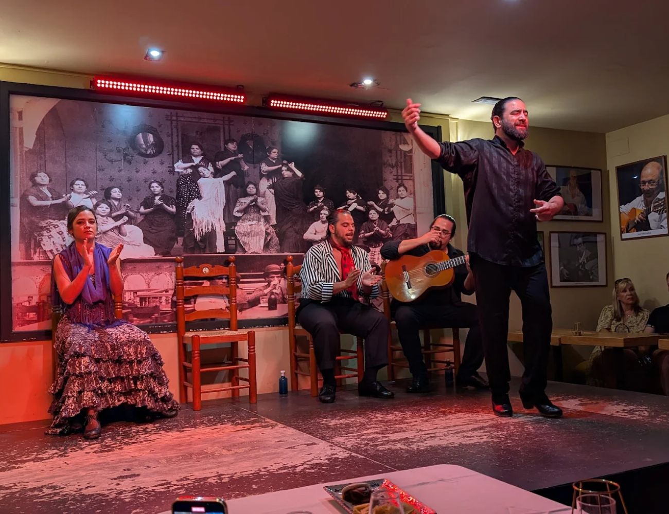 El espectáculo se desarrolla en un formato tipo café-artista, donde el público y los intérpretes comparten un ambiente íntimo y acogedor. Este formato favorece la conexión directa con el arte flamenco, creando una experiencia envolvente y cercana.