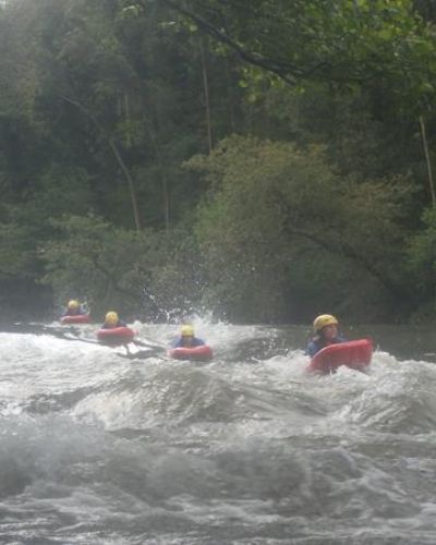 Sumérgete en una de las actividades acuáticas más emocionantes que puedes vivir cerca de Santiago: el hidrospeed en el río Ulla. Una experiencia cargada de energía donde cada participante desciende por aguas bravas sujetando un hidro-trineo, propulsado por aletas de buceo. Ideal para quienes buscan acción, contacto con la naturaleza y una buena dosis de diversión.