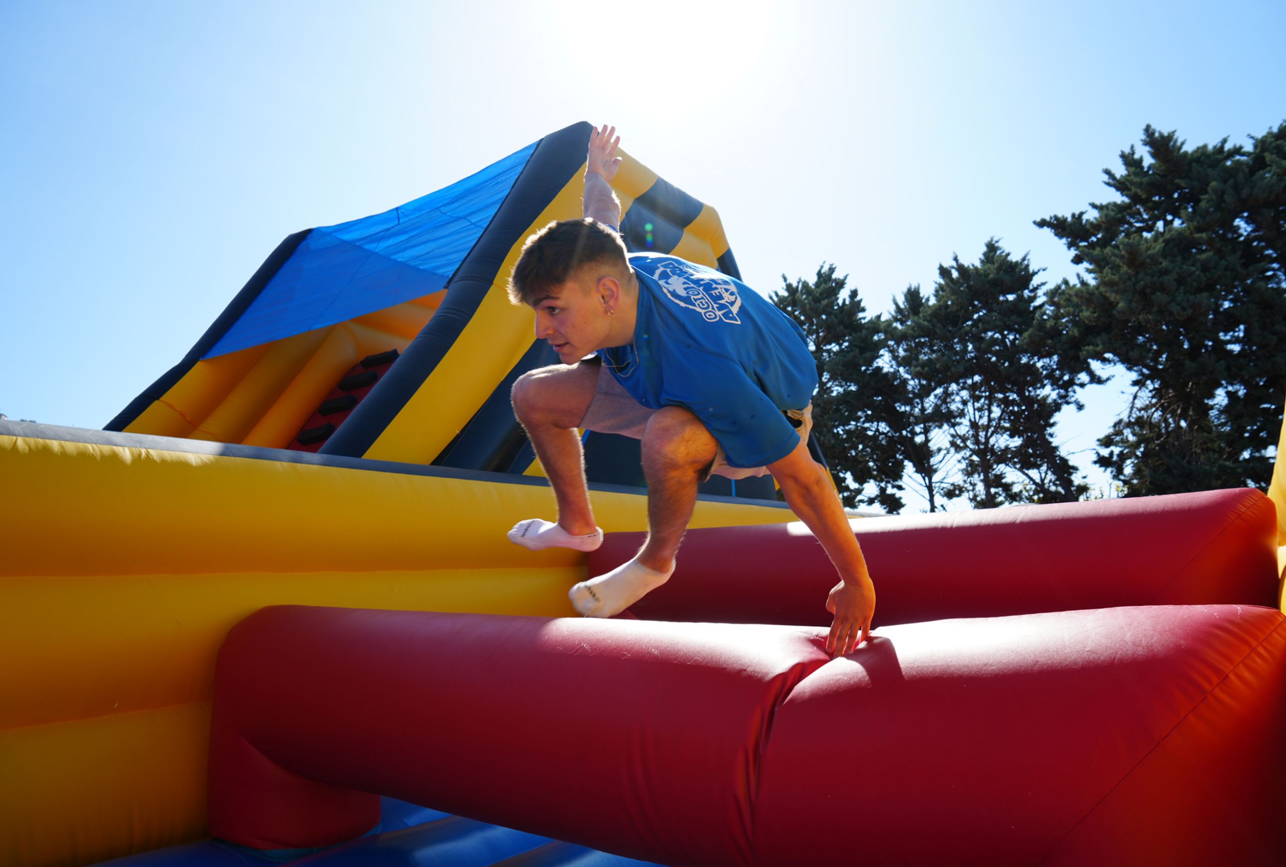 • Rueda Humana: Coordina con tu equipo para mover una gran rueda inflable a través de un circuito. El trabajo en equipo es fundamental.