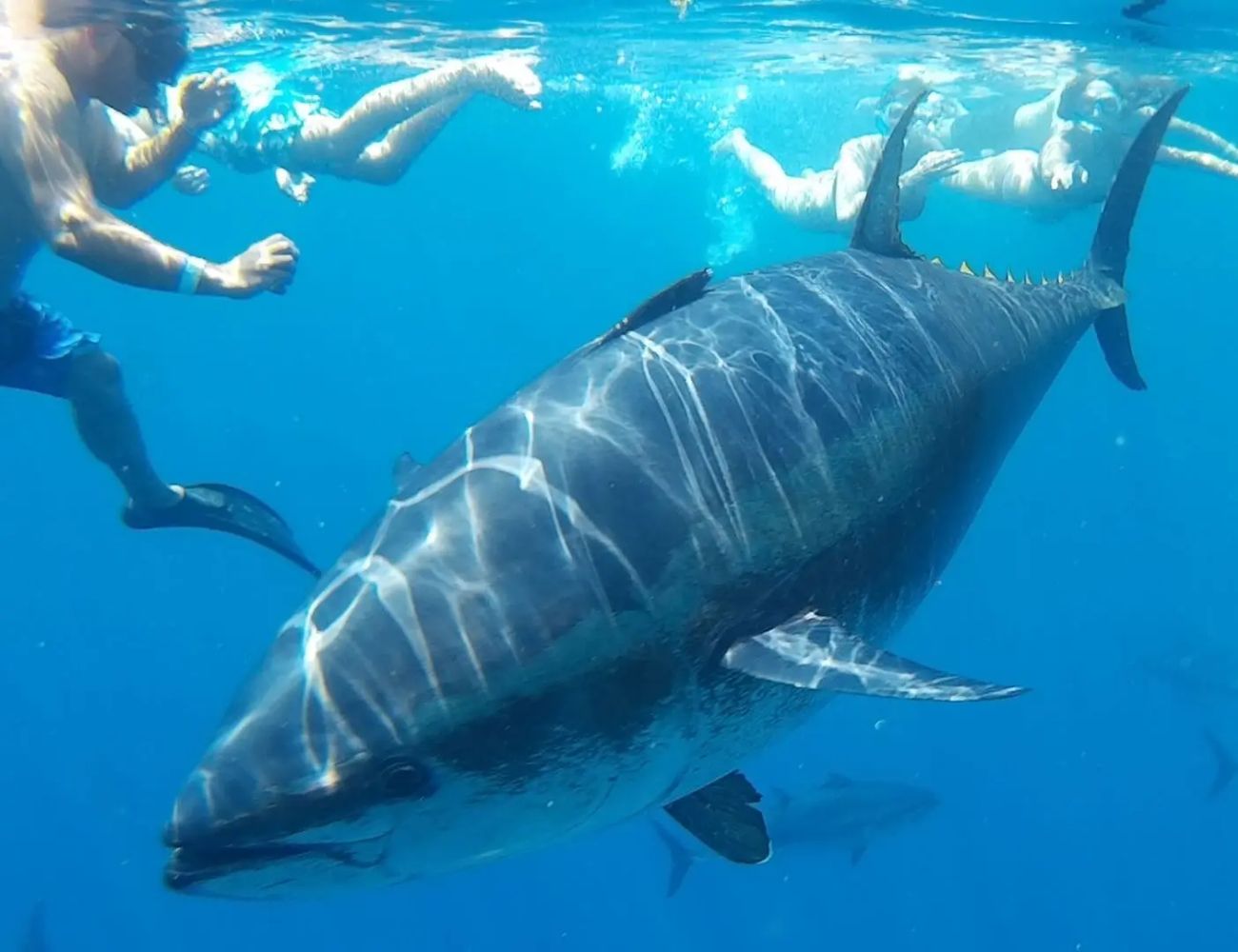 El punto más esperado llega con la oportunidad de nadar rodeado de atunes gigantes. Estos animales, que pueden alcanzar varios metros de longitud, sorprenden por su velocidad y elegancia en el agua. Compartir un espacio natural con ellos ofrece una experiencia de contacto directo con la fauna marina, siempre bajo medidas de seguridad y supervisión de expertos.