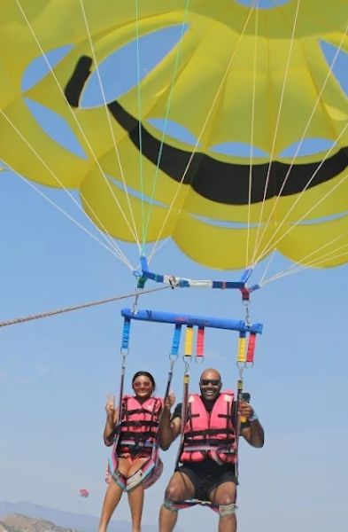 El parasailing no exige una preparación física especial, por lo que resulta una opción accesible tanto para aventureros como para quienes buscan un plan diferente de vacaciones. La combinación de mar, viento y altura consigue un equilibrio perfecto entre relax y emoción, ideal para vivirlo en pareja, con amigos o en familia.