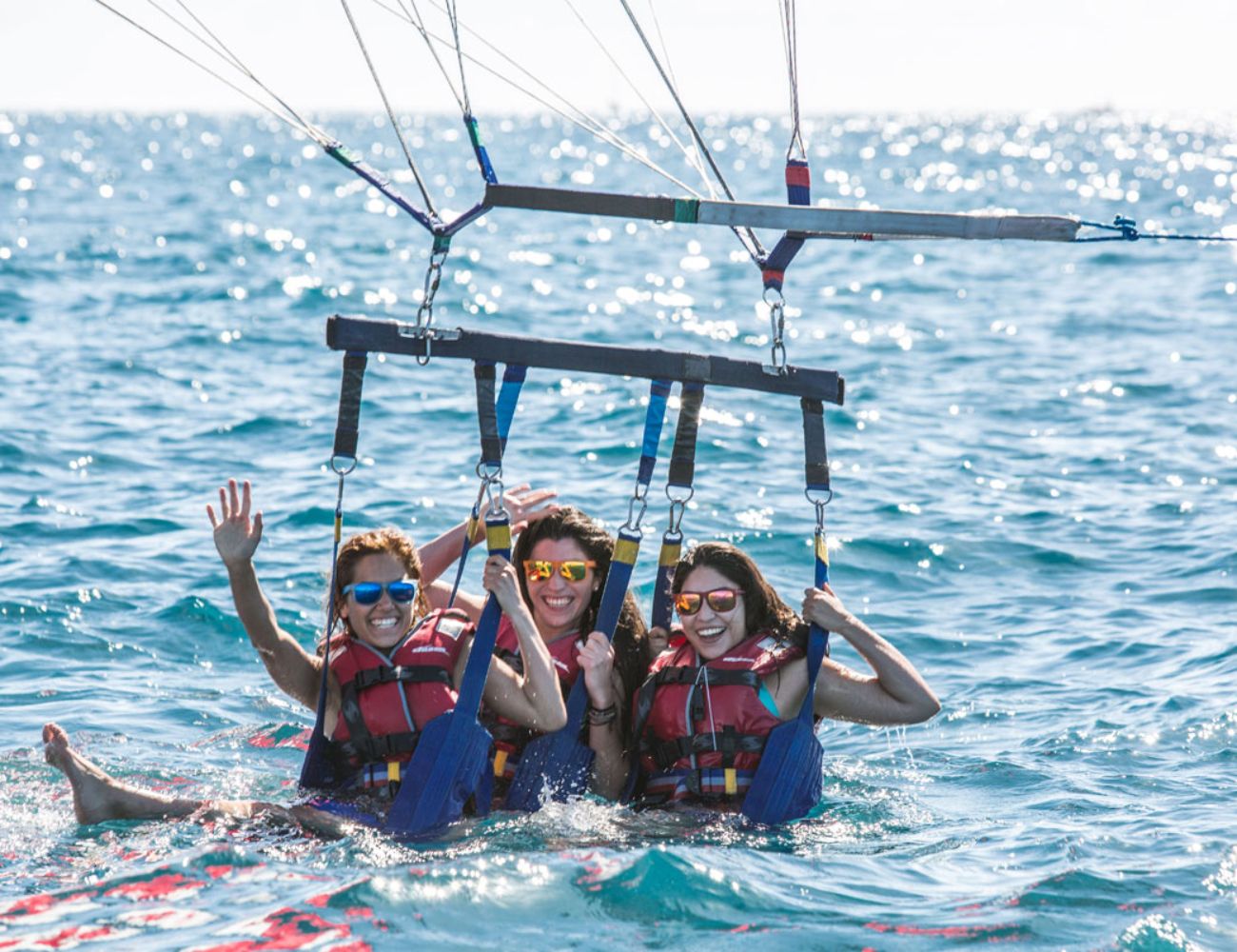 Cada participante cuenta con un chaleco salvavidas de alta calidad que garantiza seguridad y comodidad durante toda la actividad. El sistema de sujeción está conectado a un resistente paracaídas que se eleva suavemente a medida que la lancha toma velocidad, creando una sensación de vuelo libre y controlado.