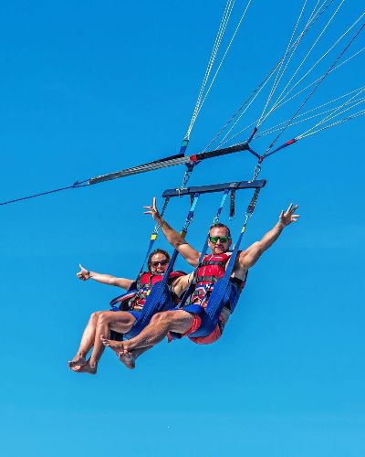 El parasailing en Gran Canaria ofrece una combinación perfecta de adrenalina, libertad y vistas espectaculares. Esta actividad permite disfrutar desde las alturas del azul profundo del océano Atlántico, las playas doradas y la silueta montañosa de la isla. Ideal para quienes buscan emociones fuertes y un recuerdo inolvidable en pareja, con amigos o en familia.