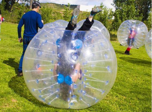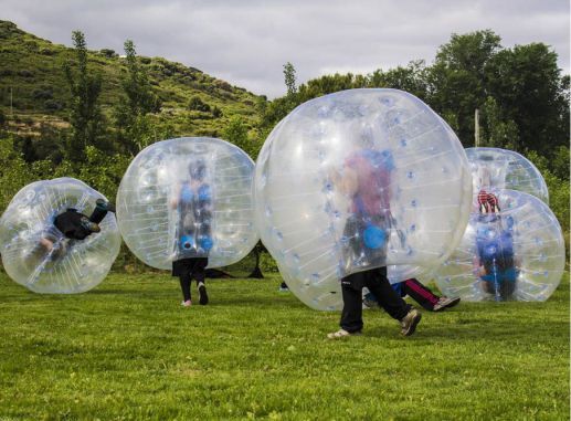 Normalmente a lo que se reduce esta actividad es a empujar y a chocar con la conciencia tranquila, ya que nunca haces daño o no te lo hacen, por lo que nuestras burbujas pueden ser utilizadas por gente de todas las edades, solo tendremos que ajustar el arnés a cada persona. El objetivo del juego varía según la modalidad a la que estemos jugando. Por lo tanto los monitores, dependiendo de las características del grupo y de lo animados que os vean, irán proponiendo diferentes juegos para pasar un rato divertido y ameno.