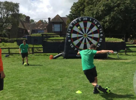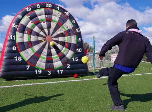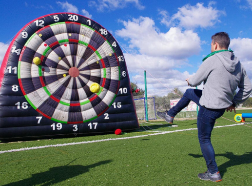Equipados con una pelota especial que se adhiere a la diana, los participantes disfrutan de una experiencia de juego novedosa y entretenida. La diana gigante, situada en una de las porterĂas, estĂĄ diseñada para desafiar la habilidad y la precisiĂłn de los jugadores, convirtiendo cada tiro en una oportunidad para sumar puntos y destacar en el juego.