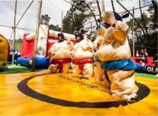 Una prueba donde las risas nunca faltan. Equipados con trajes hinchables, los participantes compiten en parejas para intentar derribar al equipo contrario. Coordinación y equilibrio marcan la diferencia.