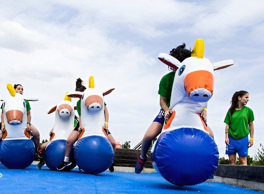 Una competición hilarante sobre caballos hinchables. Saltos, velocidad y coordinación son clave para llegar a la meta antes que los rivales.