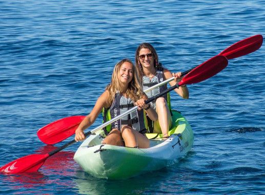 El kayak es una actividad muy popular cuando se trata de pensar planeas en el mar, especialmente en la isla de Mallorca. Junta esto con una celebración de despedida de soltera y soltero y un grupo de amigos con ganas de pasarlo bien y listo, ¡tienes un planazo!