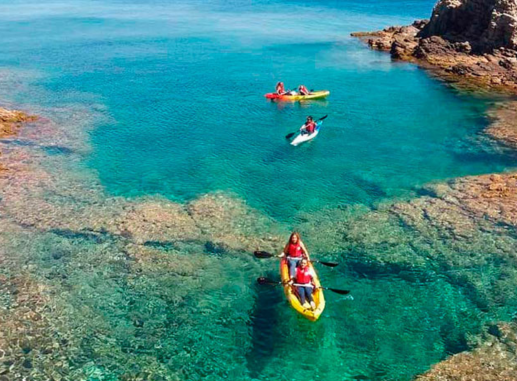 Una manera distinta de disfrutar del destino de vuestra despedida es conocer su mar y costa. Con esta ruta disfrutaréis de un paseo en kayak con paradas para hacer snorkel y descubrir el fondo marino mediterráneo.