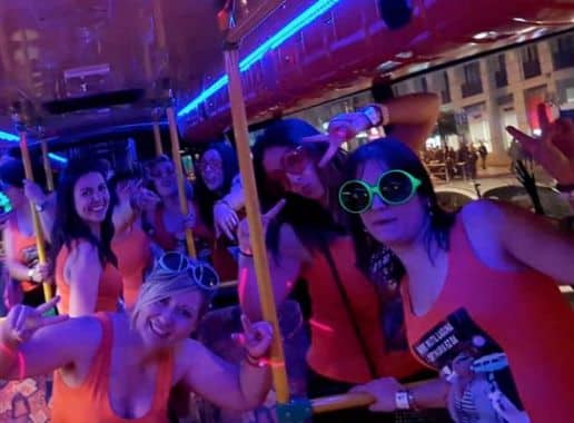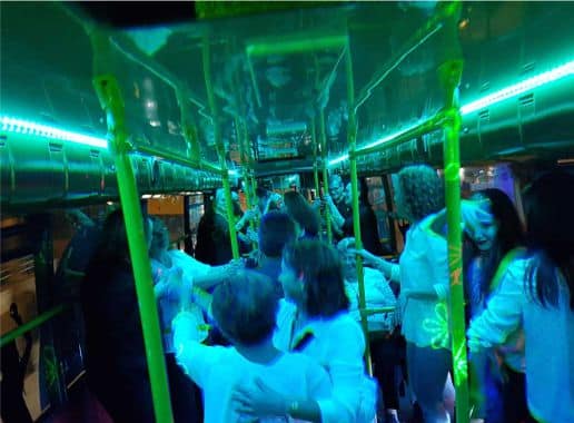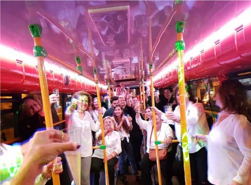 En nuestro Party Bus realizaréis una ruta con ubicación de recogida y llegada a elegir. Además, podréis añadir más tiempo de diversión y extras de bebida o shows privados.