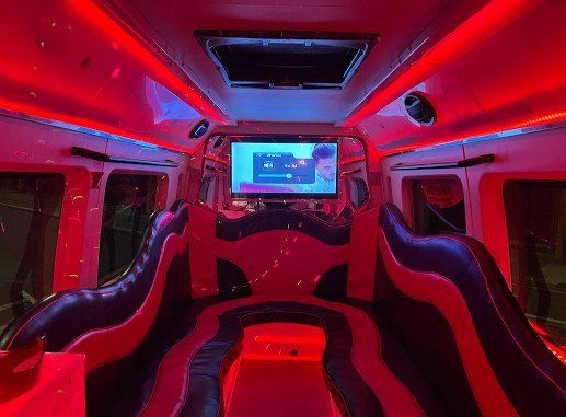 Nuestro Party Bus tiene capacidad para hasta 22 personas y viene cargado de características que lo convierten en una discoteca móvil: un sistema de sonido de alta calidad, máquina de humo, luces RGB que cambian al ritmo de la música y una Smart TV para añadir un toque multimedia a tu fiesta. Para los más atrevidos, disponemos de una barra vertical de pole dance y otra barra donde colocar tus bebidas favoritas.