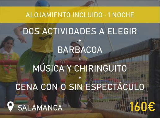 Finaliza tu día de aventuras en Salamanca con la mejor cena espectáculo para despedidas de soltera o soltero. En el restaurante Bombom, te espera una experiencia culinaria y de entretenimiento sin igual. Disfruta de una cena con barra libre y un menú a elegir entre carne o pescado, mientras participas en pruebas de humor y trabajo en equipo que garantizan una velada llena de risas y diversión.